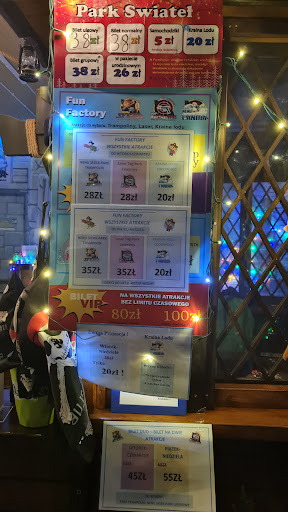 Read moreWitam, byłam tam w sobotę, już któryś raz z kolei i zawsze wybierając się jechaliśmy w zorganizowanej grupie (3 pelne auta). Bylismy tam i latem i zmima kilka razy. Naprawdę miejsce super polecenia było, aż do soboty. Na stronie internetowej nie ma wzmianki nic o biletach VIP. CENNIK też nie dokonca zrozumiały. Trochę drogi musieliśmy pokonac, aby dotrzeć ale wiadomo jak miejsce fajne to i to nie przeszkadza tym bardziej że jak wcześniej wspomniałam mamy zgrana grupę. Będąc juz na miejscu, gdy kupowaliśmy bilety zauważyliśmy cennik, na którym DUZYMI LIERAMI jest informacja (patrz. załączniki), ze Park oferuje cos takiego jak bilet "VIP- na wszystkie atrakcje bez limitu czasowego", więc każdy z nas taki bilet kupił. Jak się później okazało rzeczywistosc była inna. Chcąc iść trzeci raz na atrakcje NenuLASER - usłyszeliśmy wiadomość że nasz limit się wyczerpał, bo w bilecie są tylko dla wyjścia, a gdy inna osoba z naszej paczki poszła się pytać co w takim razie z Biketem VIP i informacja, że wszystkie atrakcje bez limitu czasowego - otrzymała odpowiedz, że jest dużo ludzi i nie da rady. Oczywiście wszystko rozumiemy i zgadzam się z tym, że każdy by chciał skorzystać jak jest dużo ludzi, (tak bo kilka razy wcześniej, jak jeździliśmy pilnowało sie kolejki), ale uwierzcie mi arena była pusta i nie była zarezerwowana na żadne urodzinki czy dla jakiejś innej grupy. Jak wcześniej wracaliśmy do domu bardzo zadowoleni i chętnie polecaliśmy to miejsce innym tak tym razem bardzo się zawiedliśmy. Czujemy się oszukani. Coś chyba jest nie tak, nie fair skoro płaci się za bilet VIP i mimo braku ludzi czy zainteresowania innych dana atrakcją nie można z niej skorzystać a informacja przy kasie mówi coś innego. Mimo bardzo miłej obsługi i fajnych atrakcji nie polecam już tego miejsca, tak się nie oszukuję ludzi. Bilet Vip - bez limitu aokazalo sie ze jednak jest lub nie wmawia, że nie można skorzystać z atrakcji bo ktoś inny tam jest - nikt slepy nie jest. BARDZO zniesmaczona,...