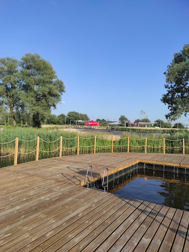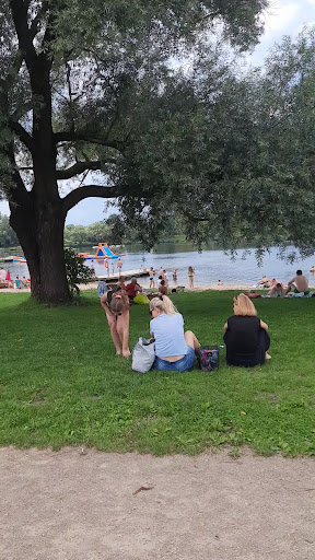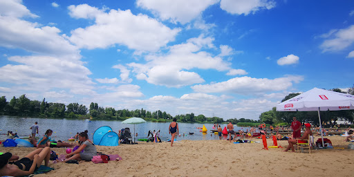 A nice place to visit, especially with kids. Parking is quite expensive though: 40 zloty until 4PM. Showers are closed (showers doors were sealed), but the washrooms are great!!! Clean, numerous stalls, plenty of toilet paper and soap available. Another surprise is that you can buy only non alcoholic beer there (which means that people bring their own). There are French Fries and zapiekankas, plus ice cream of course. The place is quite noisy: and I don't mean just people having good time, kids screaming with delight: lots of motor noise - some guys rode a motorcycle around the pond which was super noisy and annoying - and I don't really understand why they can't go for a ride somewhere else and not in a park. There were lawnmowers near by and a super noisy contraption (wakeboard). But overall it is a great place and beautifully designed. You can rent a paddle board, and other water...