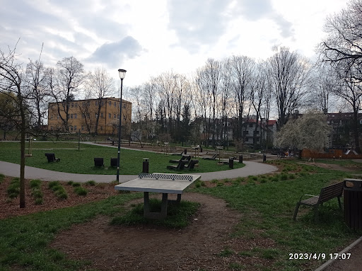 Read moreZawiera jeden z ulubionych placów zabaw dziecka. Większość zabawek wykonana z drewna. Zabawki nie szpecą, a plac jest bardzo "przytulny". Na ziemi jest wysypana kora, co chroni dzieci przed ewentualnymi kontuzjami. Niestety okolica straszliwie zabłocona zimą. Nie podoba mi się również nieskończona ilość ławek rozstawionych niczym w muzeum, ale o ile nie był to jakiś ustawiany przetarg, nie...