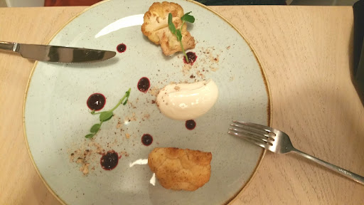 Read moreMieszane uczucia. Dania w dość nowoczesnym wydaniu, podane ciekawie. Niestety kaczka była twarda, żylasta. Kelnerka na wstępie podała karty, po czym długo do nas nie podchodziła, mimo pustego lokalu. Kiedy doszło już do zamawiania okazało się, że z wąskiego menu, jednego z głównych dań nie było tego dnia w ofercie. O tym fakcie powinniśmy chyba być poinformowani od razu. Smaczne dodatki. Jednak ceny wg nas dość mocno zawyżone. Do tego w co najmniej 3 propozycjach dań głównych (na 5 czy 6) były dokładnie te same dodatki do mięs. Deser też monotonny. Do wyboru tylko dwa rodzaje, w obu propozycjach lody i rabarbar. Koncepcja otwartej kuchni podoba mi się, jednak wystrój (zwłaszcza drugiej części sali) mógłby być poprawiony. Mieliśmy wrażenie jakbyśmy siedzieli w kącie do magazynowania niepotrzebnych gratów. Rozumiem poncept surowego betonowego wystroju ale coś poszło nie tak. Proponuję też jakiś łapacz do insektów. Frustruje jedzenie steka za 69 zł, kiedy jedną ręką trzeba odpędzać natarczywe muchy. Na dania trzeba było czekać grubo ponad 30 min, mimo że oprócz nas dwojga w restaruracji były może jeszcze 2-3 osoby. Plusem jest, że widać, że dania przygotowywane są na świeżo.