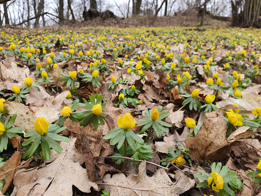 Według informacji z tablic, po przekwitnięciu rannika, wzgórze zmienia barwę z żółtej na fioletowo-białą, gdyż zaczyna kwitnąć kokorycz zwyczajna i zawilec gajowy.