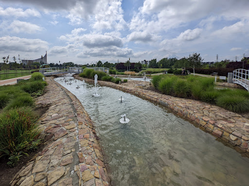 A beautiful pond like, river with fountains, runs through the middle of the park. In summer the park blooms with flowers and bushes. It has an outdoor amphitheatre for local happenings, and a lot of grassy fields if anyone desires to rest in the sun.