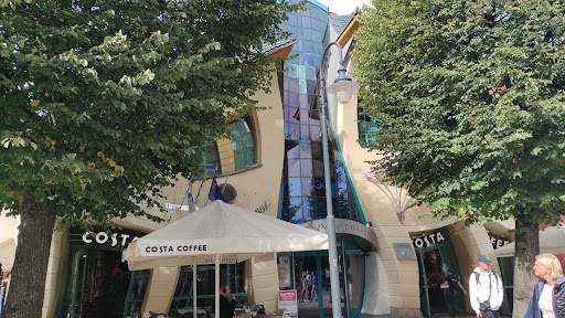 Krzywy Domek, or the Crooked House, is a whimsical architectural landmark located in the heart of Sopot, Poland. Completed in 2004, this 4,000-square-meter building is part of the Rezydent shopping center and was designed by architects Szotyńscy & Zaleski. Its surreal, warped appearance was inspired by the fairytale illustrations of Jan Marcin Szancer and Per Dahlberg, as well as the works of Antoni Gaudí .