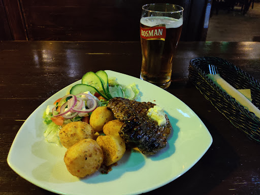 Read moreMiejsce bardzo klimatyczne, wystarczający wybór piw i alkoholi mocniejszych by przyjemnie spędzić wieczór. Dawno nie zamawiałem tam jedzenia, więc się nie wypowiem. Na drugiej sali nie działa głośnik co akurat jest plusem bo można swobodnie rozmawiać zamiast krzyczeć. Panie kelnerki sprawnie obsługują, czego niestety nie można powiedzieć o ich koledze. Z reszty minusów: -zapomnianio nas poinformować, że w weekendy (ale w tygodniu już tak XD) nie dzieli się rachunku, -jednak pani kelnerka zarzekała się, że to powiedziała (dziwne, że nikt z naszej piętnastoosobowej grupy tego nie zarejestrował), -brak także tej informacji na karcie (bo nowe drukowali no i tak wyszło XD), -na rachunku pojawiły się rzeczy zamówione przez osobę, która się spóźniła i opłaciła je przy barze - bardzo brzydko, polecam wszystkim sprawdzać dłuższe rachunki - na plus dla Pana przy barze, że wykreślił od ręki, -część obsługi wdała się w pyskówkę - może warto przemyśleć gdzie się pracuje. XD Mimo wszystko wyjście oceniam na 3 na 5. O napiwku...