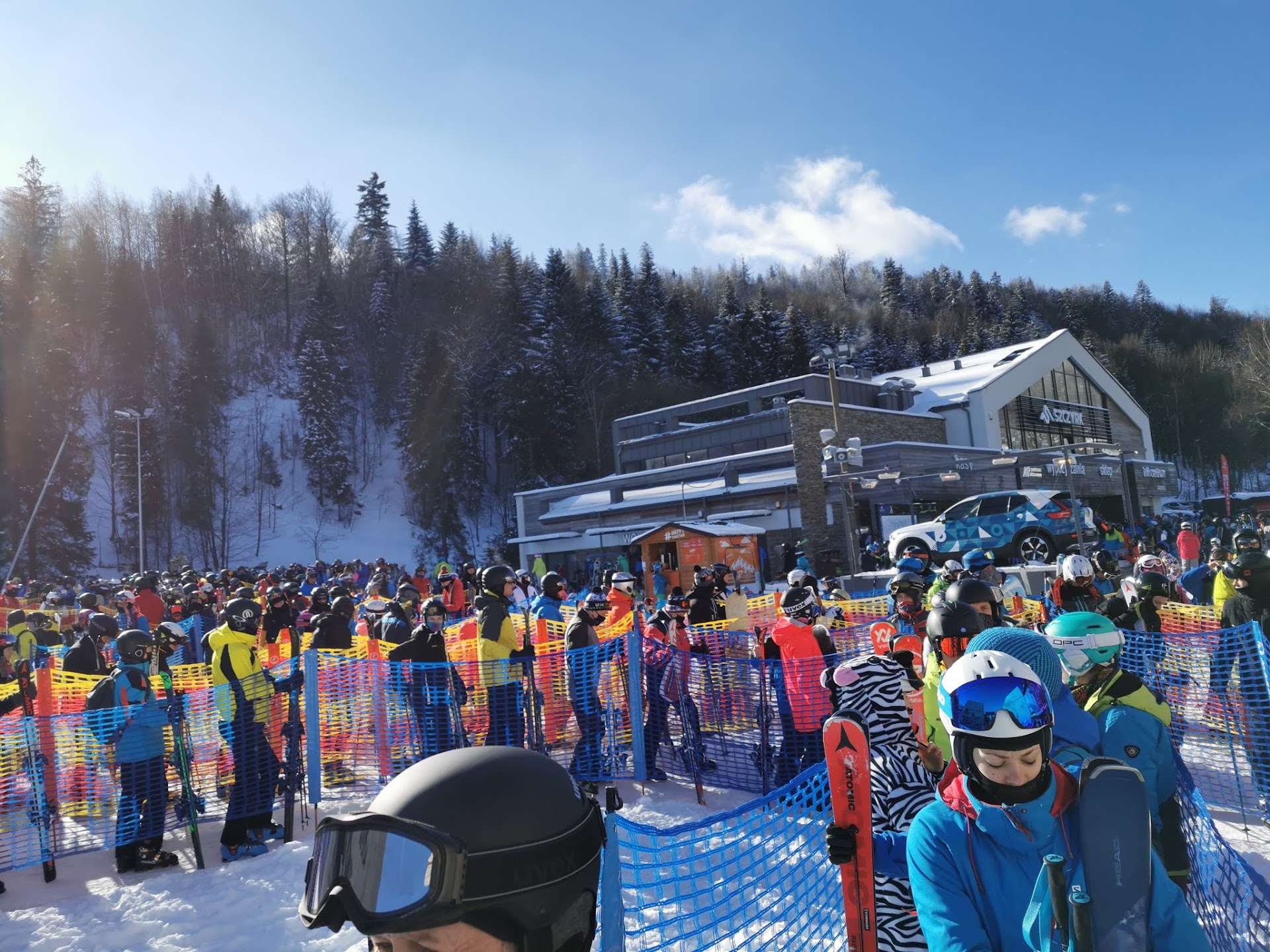 I was in Szczyrk 3 days from 15.02-17.02 and was highly disappointed. I chose working days to avoid crowds, but it was worse than on weekend. Slopes are poorly prepared (ice, bumps) and only half of them were open. The most interesting courses for advanced riders (red/black) weren't prepared at all, except FIS-graded course #23. I had a big hope to ride it, but it didnt happen. 15.02 - I parked my car at COS, and only on the top of the Skrzyczne mountain I knew that course #23 FIS COS (black slope) closed for competition. Day before it wasnt announced and I called to resort, they told me there's no competition on Monday and competition will start on Tuesday. So I went to main Szczyrk through long flat track section along the edge of the ridge. Time of waiting to the boarding on the gondola lift was around 30-35 min. At the end of the day I couldn't board to the lift going to Male Skrzyczne, because of huge queue. Lift stopped at 15:30, so I can't return to my car at COS. Instead, I walked 2 km along the main street in Sczyrk. You can ask maybe why not ride on a skibus? There's no sense to use bus, because I walked faster than cars due to huge traffic jam in the center of the town. 16.02 - I arrived to Szcyrk gondola parking at 7:30. Free parking was full at 7:50. If you want parking space close to lifts, prepare to get up early and rrive no later than 7:40. It was very strong wind that day, and resort adminstration announced that gondola lift can be stopped due to safety reasons. They recommended all crowd to move to Solisko slopes, where lifts are more wind-proof. In Solisko were the worst queues, as you can see on the photos. Probably worst skiing experience. On the positive side - good bars on the slopes, where you can stay warm, and have some "grzanec" (hot spicy wine, or hot beer), grilled sausages or cheese . Also personnel of these bars is very nice. 17.02 - I arrived at Solisko at 7:50 to the upper parking (which is in the middle of slope), and there's no queues! because there's no lift there. You just go down straight through slope #10 to Solisko lift. On Wednesday there was much less crowd, and finally I enjoyed positive side of skiiing. Second star is for decent ride on Wednesday. But generally, disappointed experience. Stay away of Szczyrk, unless you are off-season and bought skipass with...