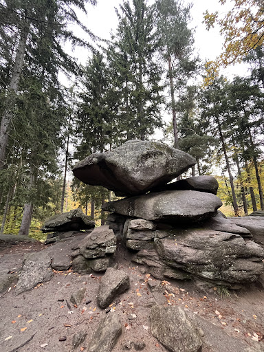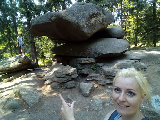 Read moreDoporučuji dojet na parkoviště, které je u hlavní cesty na obou stranách, brzo ráno. Později už nezaparkujete. My tam dorazilo na osmou a bylo to v pohodě. Od parkoviště vede strmější cesta asi 5-10 minut. Všude narazíte na značky pro cyklisty. Nikoho jsme nepotkali, dokonce i málo pěších. Cesta je dobře značena až do jednoho rozcestí, kde vyšlapanou cestu narušila lesní technika. Až budete v koncích, na Chybotek vede cesta v pravo, doleva zase k hrobu Krakonoše. Určitě se nebojte vylézt na Chybotek ve skupince, víc si houpající pohyb užijete. Pokud máte víc než 100kg, kámen se pohne také. Vylezte a běžte dopředu až na samotný kraj a chvíli vyčkejte. Kámen se zhoupne. Pak se vraťte a zase vyčkejte, vrátí se. Lidé, co se na vás budou dívat zespoda, to uvidí také. Chlapi to zvládnou i sami nadzvednout :) bude vás to lákat pořád...