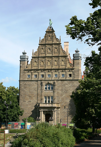 Будівля була зведена за проектом Юліуша Хабіхта (Julius Habicht, 1874–1912) на місці засипаного рову Старого Міста і призначалася для розміщення Управління Рейхсбанку Німецької імперії. Триповерхова будівля в стилі нідерландського маньєризму накрита гостроверхим двосхилим дахом. Найбільш репрезентативним фасадом цієї вільно розташованої будівлі є південний фасад з пишно декорованим порталом та багато оздобленим фронтоном, фланкованим двома башточками і увінчаним алегорією Фортуни – жіночою фігурою висотою 2,90 м, виконаної з металевого листа. Північний фронтон є скромнішим, що проявляється також у його завершенні – замість фігури, подібної до Фортуни, на його вершині встановлено кам'яний вазон.