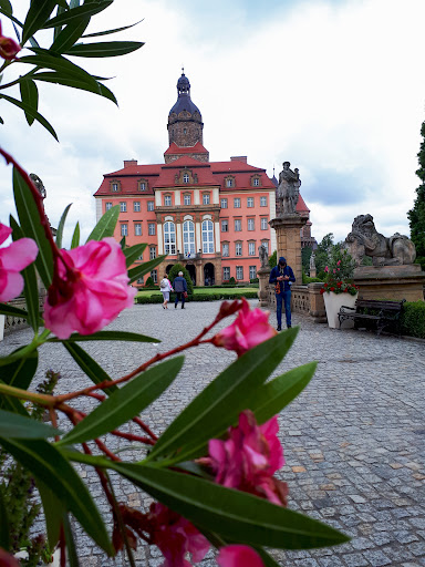 Read moreЗамок снаружи очень красивый, а вот внутри разочаровал. В средневековую часть не пускают, в современной мало что есть посмотреть - почти все, что было в замке, было разграблено во время Второй Мировой войны. И теперь залы стоят или пустые (наверху), или набитые лишь бы чем. Например, почти в каждой комнате есть современные инсталяции из старых веток (зачем????). Или два зала, отведенные под картины неизвестных современных польских художников, которые можно купить. Или продукция местного фарфорового завода. Ощущение, что залы набивали по принципу "лучше что-то, чем ничего". Билеты можно купить в трех вариантах: Замок, Замок + Конюшни, Замок + Конюшни + Розарий. Мы купили третий вариант и тоже очень пожалели: конюшни обычные, ну лошадки, ну жеребята - это не стоит того чтобы идти туда пешком полтора километра и платить за вход. Все это можно увидеть совершенно бесплатно в любой конюшне, где есть прокат лошадей. А розарий вообще беда - до него идти по карте 2,5 км в одну сторону (или ехать за дополнительные 100 злотых на аналоге местного такси). Первая часть пути по живописному парку, а потом - просто поле. Мы в итоге туда не дошли - нас отговорили возвращавшиеся оттуда...