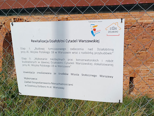Działobitnia Cytadeli Warszawskiej pomiędzy III i IV Bastionem, od strony Al. Wojska Polskiego. Duży plus za jej zabezpieczenie - zadaszenie i wstępną renowację. Minus za to, że po pierwszych obiecujących etapach nic się w kierunku dalszego remontu tego unikalnego obiektu nie dzieje.