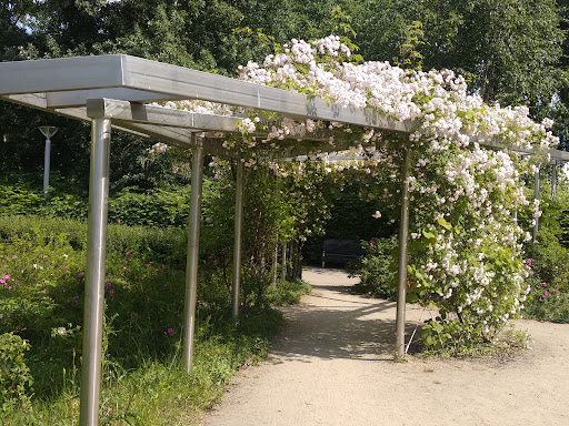 Park is small, do not expect huge areas, but is very concentrated on different contexts: -- there are lots of places for lasure, benches to lie inside the trees, to sit, even there's a bookshelf with books exchange -- really amazing trees, one is with fluttering leaves, one group is huge old one with tender young birch inside, so touching -- rose garden, so calm , so full of gentle odours -- some sculptures, they aren't huge, even small but this cosiness is very touching -- two places for kids of different ages, really full of items -- the sounds of bells from the church