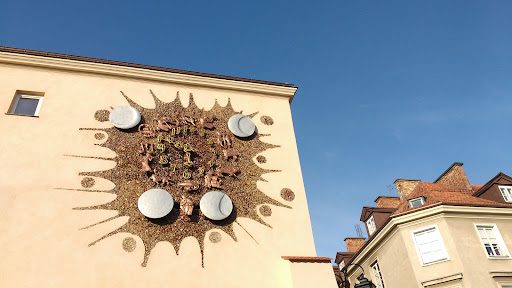 Read moreUnikalny zegar przy Piekarskiej 20, od strony Podwala. Na jego tarczy znajdują się znaki zodiaku a o pełnej godzinie całość ożywa - mechanizm nie tylko się rusza ale i wygrywa melodię do wiersza Marii Konopnickiej "A jak poszedł król na wojnę". Warto na to zaczekać - chociażby na murach obronnych.