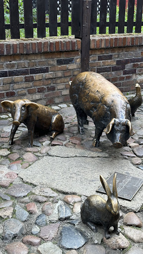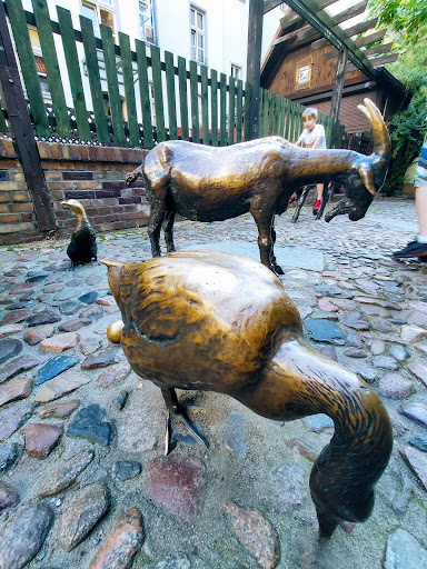 Read moreВ межах цієї мальовничої міської вулиці стоїть МЕТАЛЕВИЙ ЗВІРИНЕЦЬ ХУДОБИ . Хоча статуї виглядають мило, вони насправді є похмурим нагадуванням про багатьох тварин, які загинули в цій місцевості протягом століть. Починаючи з 1240-х років, історичні Старі Ятки , що в перекладі означає "Старі руїни", забезпечувало населення Вроцлава м’ясом від декількох видів ссавців та птахів. Захищена потужними гільдіями, м’ясна торгівля процвітала протягом багатьох поколінь у цій частині Старого міста. Але зрештою галузь змушена була перейти на менш центральне місце. Незважаючи на те, що хліб, м'ясо та гречка залишалися основою дієти місцевих жителів, до середини 18 століття муніципалітет витіснив цей бізнес із серця міста і замінив м'ясні магазини на менш криваві галузі, щоб створити імідж чистого, цивілізованого місто. Після часткової зруйнованості будівель Старих Яток під час Другої світової війни їх було відновлено і в них тепер розміщені магазини мистецтва та дизайну. Цей пам’ятник, що пам’ятає тварин, забитих в околицях, був центром для м’ясників, встановлений у 1997 р. Спочатку він складався з декількох бронзових статуй у натуральну величину: гусака (з яйцем), двох свиней, кролика, півня та козела. Кожну істоту створив інший художник. До 2017 року до колективу приєдналося теля (корова вважалася занадто великою...