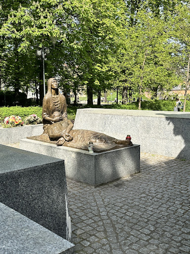 Read moreПрогуливаясь по парку сложно не заметить две бронзовые фигуры: Ангела Смерти и Катынской Пьеты - Матери-Родины, которая держит на руках убитого узника.