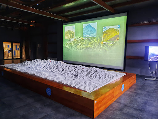 Read moreMiejsce z potencjałem, napewno warte odwiedzenia jednak są pewne niedociągnięcia które warto byłoby poprawić. Makieta w pierwszej sali fantastyczna, jednak podświetlenia np. szczytów są mocno nie precyzyjne, jakby nie trafiały w punkt. W sali z jaskinią regularnie urywał się głos w prezentacji, fajnie by było gdyby na dnie faktycznie była woda tak jak mówił lektor. Sala z dwoma ekranami to największe nieporozumienie, filmy są bardzo niejasne, skaczą z ekranu na ekran a podczas naszego pobytu materiał nagle urwał się w pół zdania, ekrany zgasły i po półtorej minuty krępującej ciszy lektor oznajmił żeby iść dalej...Ostatnia sala też przedziwna, fotele jak w kinie 3d żeby obejżec króciutki materiał o wietrze z bardzo cichym dźwiękiem. I żeby nie było - podawane jest dużo bardzo wartościowych informacji a sale że zwierzętami są bardzo udane więc całość jest jak najbardziej wartościowa, szkoda więc że nie wszystko jest dopracowane. Na miejscu jest też sklepik że świetnymi książkami i pamiątkami znacznie wyższej jakości niż to co można kupić na Krupówkach. Wejście jest darmowe jednak warto wcześniej zarezerwować sobie godzinę ponieważ goszczą tam grupy...