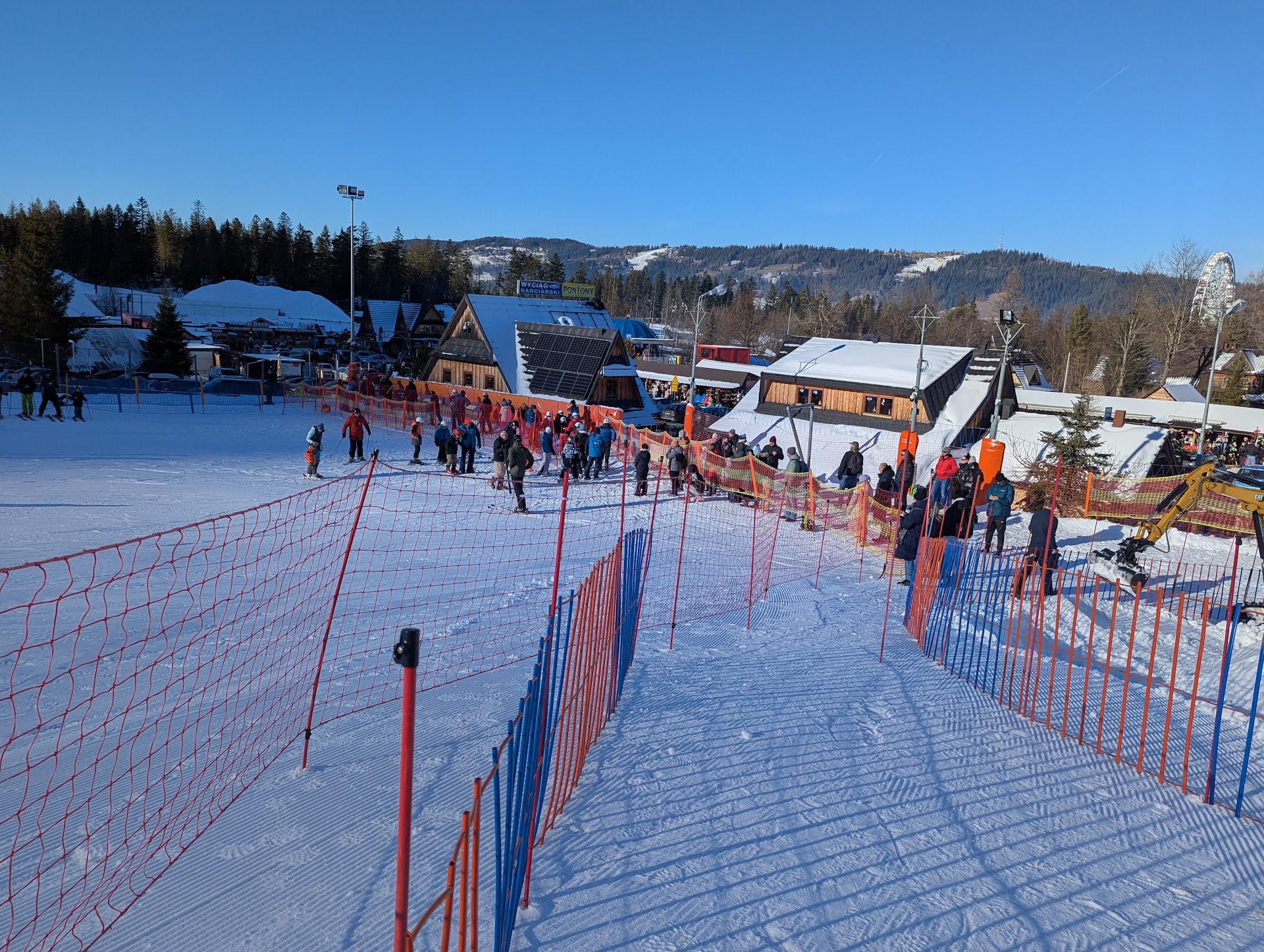 9 latek z dużą chęcią sprobowania nowej przygody. Kompleksowo obsluzomy przez Gigant. Narty wynajęte 40 pln/h.. nie ma możliwość wynajęcia na dobę. Wykupiona 1 h nauki z instruktorem...150 pln....karnet 10 zjazdów za 40 pln. No to jedziemy....trafiamy na widać że doświadczonego wiekiem instruktora...Dobry prognostyk. Stok...układanie...pierwsze minuty...ale z minuty na minutę widzę jakieś mniejsze zainteresowanie dzieciaka łapaniem wiedzy. Pierwszy zjazd....drugi zjazd już kiwanie negatywne głową dziecka...trzeci i dosyć po 30 minutach. Dzieciak kładzie się na śniegu...instruktor bierze narty, przyprowadza dzieciaka, wzrusza ramionami i mówi że dzieciak ma dosyć...nie wszyscy od razu łapią i życzy wytrwałości next time. Kolejne 30 min można było coś z dzieciakiem poćwiczyć...może chodzenie, wchodzenie w górę stoku ale nie...dziękuję oddaje sprzęt i próbuje karnet....zostało 7 zjazdów i nie da się zwrócić. Obok rynna na zjazdy pontonem...pytam może reszte karnetu na zjazdy pontonem...dzieciak tak....firma Gigant nie można. Oddałem karnet kolejnemu dzieciakowi życząc powodzenia. Mam mieszane uczucia gdyż poprzednie dzieciaki też uczyli różni instruktorzy. Jednaego nawet zagraniczny i efekt ...jeździeli po 1 h i jeżdżą od lat. Wiem, że dzieciak dzieciakowi nie równy ale od razu można było wyczuć brak chemii instruktora z dzieciakiem. Sam jestem instruktorem w innej dziedzinie i osobiście odebrałbym to jako porażkę. A tu instruktor lakonicznie przekazał ojcu 3 zdania i ... poszedł na papieroska. Proszę samemu ocenić. Zdążyłem zrobić 4...
