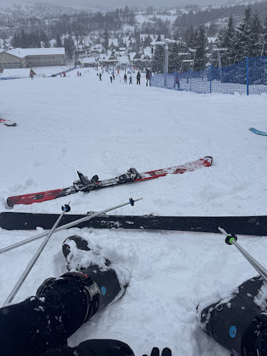 Read moreJeździmy tam od 4 lat zawsze w ferie. Trasa z wyciągu krzesełkowego wyłącznie dla osób umiejących bardzo dobrze jeździć. Amatorzy stają co kawałek lub zsuwają się. Często przewracają utrudniając przejazd zwłaszcza w wąskich fragmentach. Zjazd z krzesełka dość stromy i wąski. Dodatkowo często na trasie zjazdu z niego stoją snowboardziści zapinający deski. Część osób na nartach stoi zaś na szczycie i chyba odmawia modlitwy, bo nie można się nawet przecisnąć miedzy nimi. Plusem wyciągu krzesełkowego jest brak kolejek. Praktycznie cały czas jest na bieżąco. Wyciag orczykowy, zwłaszcza ten najwyższy, trudny dla osób na desce. Gdy jest mało śniegu, to nawet umiejący dobrze jeździć są samoczynnie sciagani w lewo i wyjazd to jedna wielka walka i siniak na nodze. Na dolnej części trasy mnóstwo szkółek. Stoją na całej szerokości i nie ma jak przejechać. Dodatkowo stoi tam mnóstwo gapiących się rodziców robiących zdjęcia swoim dzieciom, często stwarzając zagrożenie. Warunki na całej trasie dobre tylko do 12- 13. Potem fatalnie. W górnej części miejscami lód i bardzo dużo muld. Przydałoby się robić przerwę na ratrakowanie. Reasumując. Nie umiesz jeździć to nie użyjesz tam jazdy. Umiesz to wrócisz z...