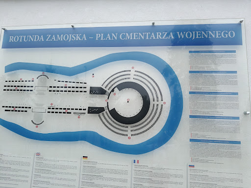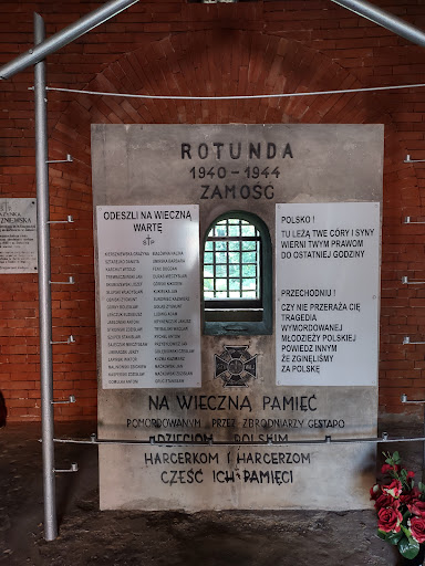 Read more⭐ Rotundę Zamojską wybudowano w latach 1825-1831. Zbudowana na planie koła o średnicy 54 m, otwarta od strony północnej ku twierdzy. Składała się z 20 jednakowych cel otwartych na dziedziniec arkadami dla wtaczania armat. W murach zewnętrznych znajdowały się okna strzelnicze. Rotunda przetrwała do czasów obecnych w niezmienionym kształcie. ⭐ Podczas II w. ś. Niemcy stworzyli tu w czerwcu 1940 r. przejściowy obóz dla ludności aresztowanej w ramach niemieckiej Akcji AB Nadzwyczajnej Akcji Pacyfikacyjnej. Później, w roku 1942, obiekt ten stanowił także miejsce licznych, masowych egzekucji, jakie obejmowały ludność Zamojszczyzny, w tym również dzieci. Szacuje się, że pozbawiono tu życia ok. 8 tysięcy ludzi. ⭐ Dla uczczenia męczeńskiej śmierci wielu Polaków władze i społeczeństwo Zamościa umieściły w celach rotundy tablice informacyjne i epitafia, dedykując je poszczególnym osobom lub grupom społecznym. Większość ofiar nie ma swoich grobów, dlatego też wzniesiono im symboliczne mogiły. Wzdłuż alei prowadzącej do Rotundy oraz dookoła jej murów na zboczach szerokiej grobli znajduje się cmentarz. Z woli mieszkańców Ziemi Zamojskiej miejsce to zostało upamiętnione jako Pomnik Męczeństwa...