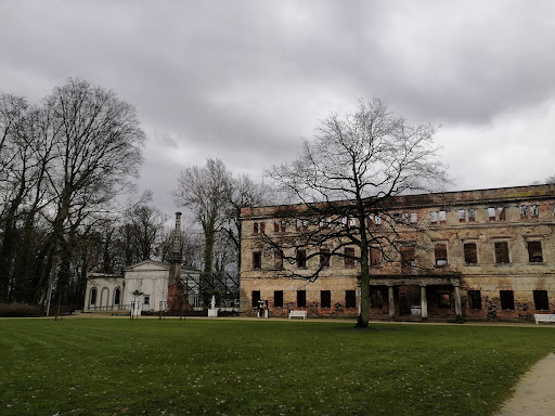 Read moreMiły park (chociaż byliśmy w słabą pogodę, ale mówią, że na wiosne jest przepięknie, bo kwitnie niedzwiedzi czosnek), ruiny (jakich dużo w całej Polsce), ALE! Niesamowita kawiarnia w odnowionej części oranżerei i po prostu fantastyczne dziewczyny, co tam pracują, robią to miejsce unikatowym! Byliśmy w dlugi Bożenarodzeniowy weekend, kiesy wszystko wszędzie jest zamknięte, mżawka, wiatr... No ale dobra, pooglądajmy kolejny zamek! Fajnie, że za darmo (wiem, że jestem żmotem, ale płata znechęca do odwiedzania, zwłaszcza jak nie za bardzo jest co obejrzeć). Super, że wstęp w pałacyk (ruiny faktycznie) jest dozwolony! Możesz chodzić w tych korytażach, oglądać sciany i freski, co zachowali się, robić zdjęcia! (bo na prawdę non-sense w dzisejszych czasach gdzieś zabraniać robić zdjęcia). I bobma! Otwarta kawiarnia! Przemiły kącik z cytrynami w doniczkach, z dobrym asortymentem ciastek i zapachem kawy! Krzesła jak z pałacu, porcelanowe naczynia, i dziewczyny, które opowiedzą o tym miejscu. Też można kupić suweniry i magnezy. Same miłę wspomnienia! Tyle człowieku trzeba, żeby w weekend kawiarnia...