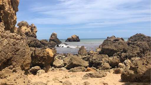 Praia dos Arrifes is a small exciting and cozy beach. There are a toilet facilities, lifeguard and a cozy cafe on site. There is free parking close by, almost all the way down to the beach. The beach is protected by 3 large rock formations which make the beach different from the other beaches in the area. I would recommend bringing your diving mask as this place is exciting to dive at. It is also possible to swim through the rock formations, however this is a bit dangerous, so do it only if you are a good swimmer. We would definitely recommend you to visit this...