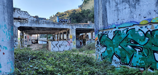 There's street art around on your walk to and from the ferry past this place. This particular area seems to be abandoned warehouses and not really for tourists to visit but to pass through. You can see the 25 April bridge from here. You overlook the Lisbon landscape on the opposite side of the river.