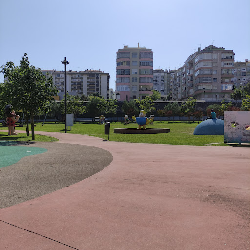 Read moreÉ um parque grande e vedado com um portão que deve fechar durante a noite. Tem o tema da "Turma da Mónica", o que anima tanto miúdos como graúdos. Tem uma aranha enorme para trepar Tem.um castelo com 3 baloiços de vários níveis. Tem um baloiço de corda para várias crianças. Tem um slide. Tem meios círculos de cimento pintados às cores de vários tamanhos para trepar. Tem um relvado grande o suficiente para jogar futebol ou andebol. Tem um banco circular daqueles que anda à roda. Tem um tranpolim ao nível do chão. Dá perfeitamente para uma criança andar lá dentro de bicicleta ou de triciclo. Tem uma casa de banho pública com auto lavagem mas sem papel higiénico e sem papel nem sabão para as mãos. Tem zona de...