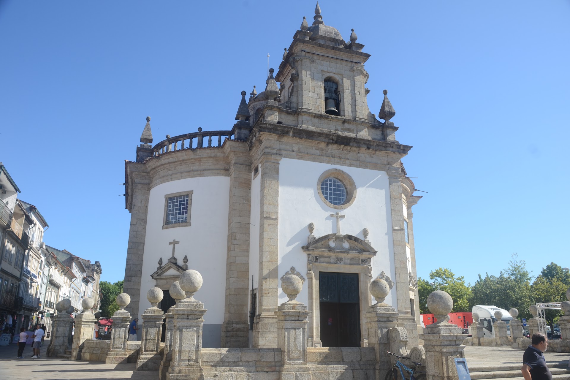 Dos siglos después, en 1704, se empezó a construir en el mismo lugar una nueva iglesia cuyo proyecto fue concebido por João Antunes. El conocido arquitecto portugués optó por un estilo muy característico del norte del país en el que el granito, principal material utilizado en la construcción local, y el blanco de la cal se conjugaron en las armoniosas formas barrocas, en este caso, de inspiración italiana.