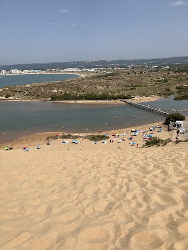 Our dog Teddy's happy place. We go during the week when quiet and when allowed. Mid June to mid September off limits for dogs. Walk to the end of the south bank side and navigate a narrow path, watch your step as parts are degraded, for great views of Sao Martinho do Porto and the bay's entrance. Climbing the dunes, some of the highest in Europe, is a rite of passage which will offer some spectacular views. After the beach try the Bar das Piscinas where quality food is served at...