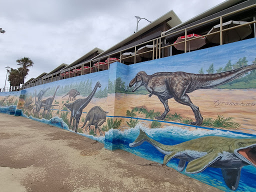An dem kleinen Strandabschnitt ist vieles geboten. Es gibt alte Dinosaurierspuren zu bewundern, auf die in aussagekräftigen Tafeln hingewiesen werden. Die grossen gemalten Bilder an der Uferbefestigung machen den Eindruck einer vergangenen Urwelt umso intensiver für Kinder und Erwachsene. Der Zugang zum Wasser mit Sandstrand ist eher schmal, weite Abschnitte sind durch grosse Felsplatten abgedeckt. Es gibt viele Möglichkeiten zur Verköstigung, um den Ausblick in entspannter Atmosphäre zu geniessen. Es gibt auch einen direkte Unterführung auf die dem Strand abgewandte Seite der...