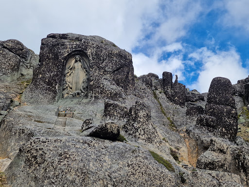 Assim que chegámos, vimos que tinha uma pequena zona estacionamento e logo a partir deste ponto é possível visualizar toda a área natural e a parte esculpida na pedra das escadas que levam até à bela escultura de baixo-relevo da Nossa Senhora. É uma escultura bem maior do que as fotos fazem parecer e de acesso algo complicado, mesmo com as escadinhas. Não existe corrimão e estão semi-destruídas, não sendo, assim, contínuas em algumas zonas. Não recomendo, por isso, que miúdos abaixo dos 12 (vá) tentem subir, que podem muito facilmente escorregar ou até cair. A maioria das pessoas que lá esteve connosco limitou-se a ver a escultura de longe.