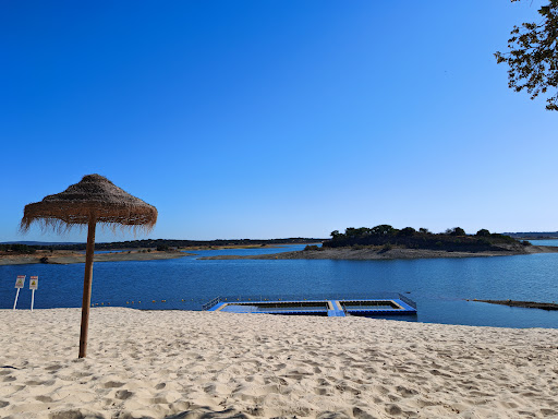 Read morePraia Fluvial com potencial! A água estava a uma temperatura desejável, apesar da água não ser das mais transparentes. Mas tinha fundo de areia, sem pedras. Tem alguns chapéus de côcos para sombras e algumas Azinheiras que dão sombra agradável e o piso é de areia de praia. Têm vigilância de nadador-salvador e estacionamento. Tem zona de piscina/plantaforma para quem não queira tomar banho directamente no rio, com zona para adultos e crianças. Infelizmente, é zona com algumas vespas, o que pode ser perigoso para quem seja alérgico à picada do insecto, ou, no meu caso, fique receoso sempre que alguma se aproxima: levei comida para almoçar e de repente estava rodeada por várias delas :( As casas de banho também podem ser melhoradas, já que não se conseguem fechar por dentro, e qualquer pessoa pode entrar dentro delas sem pré-aviso, já que as sanitas são longe das portas e nem sequer se consegue segurar na porta para ninguém entrar. O bar tem bom aspecto, em termos de decoração e de menu, mas não comi lá; queria um gelado e não parecia ter (pelo menos não tinham nada à vista que mencionasse a venda), o que é lamentável em pleno Verão. Mas visto ser uma praia que foi inaugurada há menos de 1 mês, suponho...