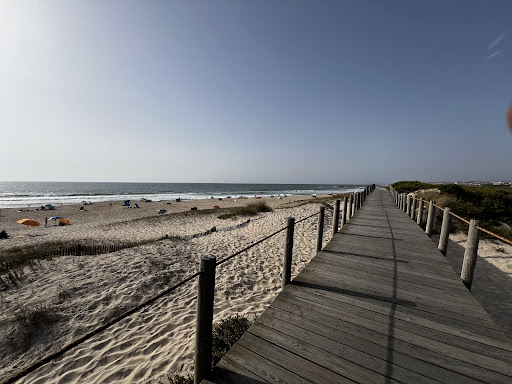 Praia não concessionada e sem vigilância na época balnear,mas muito agradável de estar,zona tranquila amparada por um paredão que protege das grandes ondas e do vento norte. Para chegar de carro terá de percorrer um caminho de terra ao longo de uma Etar,mas não se dá pelo cheiro. Recomendo passar por lá para uma banhos de sol,ou por vezes um banho...