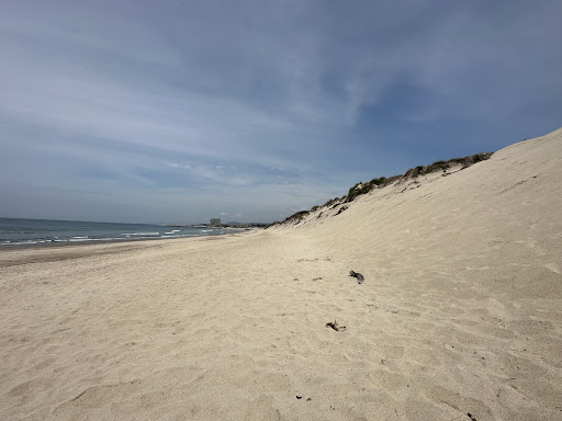Read moreIncreible lugar. Os recomiendo muchísimo esta playa, accedes por algunas pasarelas de madera, en nuestro caso hasta una duna, y cuando llegas a la cima de la misma (es alta) te recorre una sensacion increible al ver ahí abajo el mar. Además el agua exquisita y todo el mundo guardaba muy bien la distancia de seguridad. CONSEJO: En fin de semana es muy dificil aparacar y es mejor dejar el coche algo lejos si no quieres meterte entre un montón de callejones sin salida o coches...