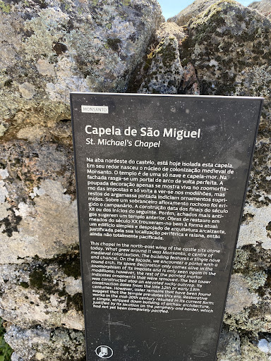 Read moreA Capela de São Miguel do Castelo, localizada em Monsanto, foi construída no Séc. XII e foi durante muito tempo a Igreja Matriz da região. Este modesto templo encontra-se junto à entrada principal das muralhas e Castelo de Monsanto e praticamente só restam ruínas do mesmo, contudo ainda dá para ter uma ideia de como terá sido em tempos e ainda possui o arco triunfal que separava a nave da capela-mor. A sua arquitectura é de estilo românico tardio e possui uma única nave. Podemos ainda ver, logo à entrada, escavadas nas rocha, várias sepulturas que se acredita que sejam do tempo de D....