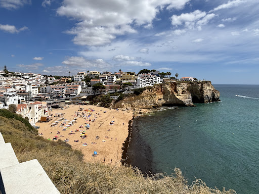 Carvoeiro town beach is pleasant enough, but a little small and permanently crowded in high season, almost until it gets dark (don't think you can go between 4 and 5pm for some space! It gets even more crowded at that time)! A rather large section of the beach is cordoned off for boats and pleasure paddle craft, which pushes the bathers into an even smaller area.
