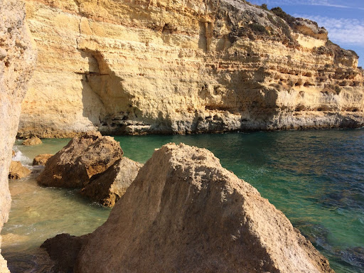 Read moreНа этот пляж можно попасть только на лодочке, каяках или вплавь;) но вид с материка не менее великолепен. А чего стоит понаблюдать с высоты на группу на каяках для которых специально готовят обед на этом пляже как награда за то что они доплыли из Портимао на каяках. В этот день был сильный шторм. После пару попыток инструкторов заплыв на пляж был отменен:( Обед тоже отменен:( Обратно ребят вереницей за трос отбуксировали обратно...