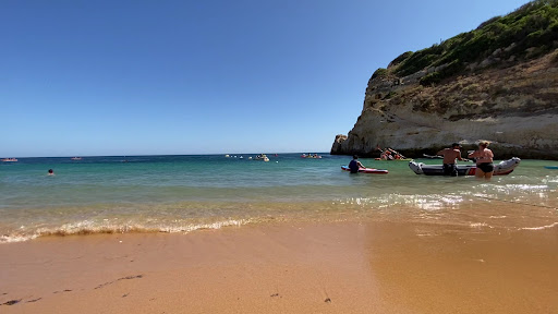 The big plus is that from here you can rent kayaks or SUPs or take a boat tour to visit the nearby Benagil cave, coves and other caves along the coast. VERY RECOMMENDED!!! Take a kayak or SUP if you can, so that you can actually get ashore inside the Benagil cave or on the coves. Larger boats will enter the Benagil cave only for a few minutes and won’t let you off board.