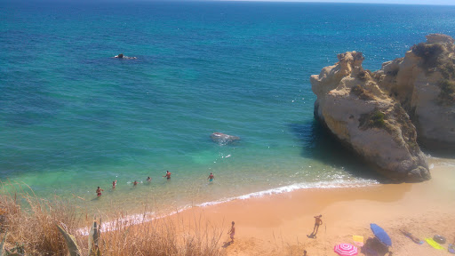 Read morePraia dos Beijinhos is a small, hidden beach in Portugal's Algarve area, near Armação de Pêra. Its name means "Beach of Kisses," perfect for couples. The beach has soft golden sand, clear blue water, and tall cliffs that protect it from wind. You reach it by steep stairs, so be careful.