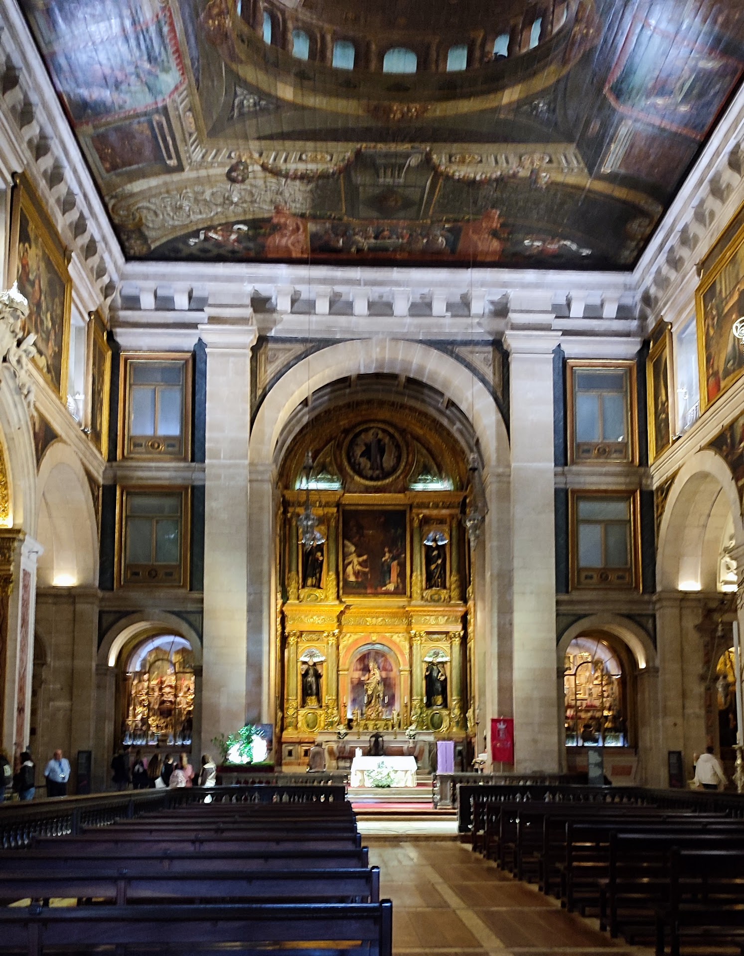 Read moreHaving visited churches and cathedrals all over Europe, I would say that the Igreja de São Roque (the Church of Saint Roch) is one of the most elaborately decorated. The wooden ceiling is colourfully painted with angels and cherubs and fancy scrolls. The roof painting also includes two fake domes. The main body of the church is completely open, there being no pillars to support the roof. On both sides of the nave there are a series of small chapels deeply recessed into the side walls. These are very ornately decorated with designs heavily carved from wood and then covered with gold leaf or gold paint. This is supplemented with marble and some of the chapels feature large and heavily framed oil paintings. High above these side chapels, large paintings also hang on the walls.