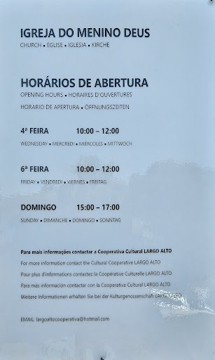 L’Igreja do Menino Deus è seminascosta nel versante orientale della collina di São Jorge, ed è sconosciuta alla maggioranza dei turisti. Tuttavia l’originalità e l’eccezionalità del lavoro architettonico, oltre al fatto che scampò miracolosamente al terremoto del 1755, rendono la chiesa del Bambin Gesù un'interessante esempio di architettura portoghese. Sul luogo era sorto, all’inizio del XVIII secolo, un ospedale religioso dell’ordine: “Terceira de São Francisco de Xabregas”: una religiosa del convento della Madre de Deus offrì a questo nuovo istituto una statuetta del Bambin Gesù ritenuta miracolosa. Da questa statuetta prese avvio la nuova chiesa offerta dal re Dom João V, in conseguenza di un voto fatto dal re al Bambin Gesù per facilitare la nascita di un erede. La chiesa fu realizzata a partire dal 1711 su disegno del grande architetto João Antunes, influenzato dallo stile del Borromini e del Guarini. Questa sarà la sua ultima opera, in quanto l’architetto morirà l’anno seguente. La chiesa fu terminata sotto la direzione dell’architetto tedesco Johann Friedrich Ludwig, nel marzo 1737. Nella cerimonia d’inaugurazione, il re fu accompagnato in una processione notturna con le fiaccole dai figli e dal popolo della capitale portoghese e trasferì la statuetta dall’ospedale alla chiesa, dove tutt’oggi si trova. La facciata della chiesa, in stile Manierista, integra elementi barocchi ed è avanzata rispetto al convento, che possiede un chiostro manierista, con pannelli di azulejos. L’interno ha una pianta originale con abside profonda (Capela-Mor) e un’unica navata rettangolare, dagli angoli tagliati, che crea un ottagono. In questo modo lo spazio è distribuito in modo equilibrato e trasmette una sensazione avvolgente. Le pareti sono completamente ricoperte di marmo, con splendidi intarsi policromi. La talha dourada è limitata alle otto pale d'altare laterali, che integrano una serie di splendidi dipinti di André Gonçalves e del pittore spagnolo André Ruvira, eseguiti intorno al 1730. La pala d'altare della Capela-Mor, in marmo, è stata progettata dal padovano Giovanni Antonio Bellini. Nel centro, in una piccola nicchia, vediamo la statuetta del Bambin Gesù della devozione popolare. A completare la decorazione è il magnifico trompe-l'oeil dipinto sul soffitto da una partnership di artisti: Vitorino Manuel Serra, John Nunes Abreu, e i più famosi Jerónimo da Silva e André Gonçalves, che rappresenta l'ascensione di San Francesco con le virtù, tra meravigliose...