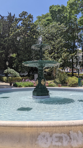 Praça da Alegria is a small, tranquil park and garden in downtown Lisbon, Portugal just a block up a small incline road from Avenida da Liberdade. The charm of this place is its dominating large stone round pool with bronze fountain spraying water into the pool.