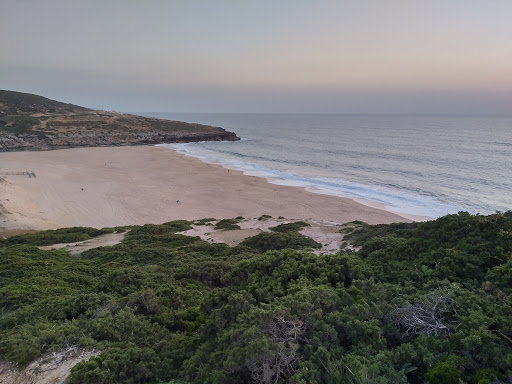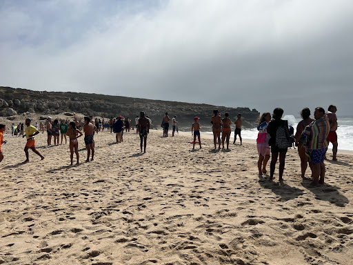 Our whole family really enjoyed this beach. The vibe was great, there are 2 parking lots. One at the bottom of the road which is paved and one at the top of the hill just up the road on the way to Ericeira. There is a staircase to access the beach from it. The great thing about this beach is that there is some kind of river system that connects to the ocean where the water is much warmer and it provides a great place for younger kids to swim and play without fear of the ocean which is cold and can have aggressive waves. For the surfers this is a great spot. There is a place to rent surfing gear and plenty of places to eat with great food. At peak hours, it may hard to find a table so always a good idea to pack snacks. With the ocean breeze and the cool water, the temperature here is milder even on the hottest...