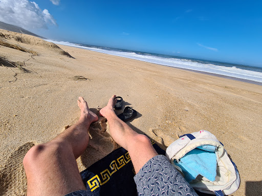 If you're looking for a beautiful tan with amazing views, head to Salgado. Less popular than Nazare (and a bit more difficult to get to), you get away from the crowds to actually enjoy the beach. The water is ALWAYS powerful - I have yet to see it be safe for swimming (generally there is a red flag out so you cannot go swimming - if you do, be warned: local authorities may come and stop you). If you're looking at the water, to the right, there is a "nude" part of the beach (to be honest, this is legal in most beaches in Portugal, but Salgado is one of the ones that is known for having a discrete place). For some reason, I feel like when I go to Salgado, I get more tan than if I go somewhere else (the locals say that the sun is more powerful in Salgado than Nazare, even if they are only a few miles apart). Parking is not easy here; have a car that's able to park in the sand without getting stuck (when I had a rental, I had to have people help me get out since my tire got stuck in the sand!) Don't be fooled, though: although it's less popular than Nazare, this beach can still have a lot of people there. Get there early to grab a nice parking spot ... and then sit back, and enjoy the sun rays...