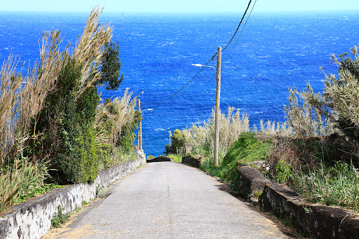 The way down is very steep and winding. I recommend leaving your rental car here. Not only because the road down to Farol Ponta do Arnel is very steep and narrow, but also because it can be very slippery, especially in the morning...