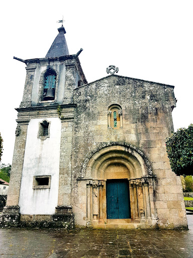 Aunque geográficamente esta iglesia no se localiza en las márgenes del río Miño, está vinculada estilísticamente a ese foco regional, en el que predomina un aire típicamente gallego, resultante directo de la influencia de los talleres de la Catedral de Tuy y otras iglesias de la provincia de Pontevedra. La primera referencia conocida a este templo es la fecha que aparece en el dintel de su fachada principipal, 1295 de la era hispánica, o sea, 1257, que podría corresponder al año en el que se concluyeron las obras en esta fecha. El repertorio decorativo de la iglesia confirma la cronología de finales del siglo XII. Destaca la representación de la anunciación en los fustes de su portada principal, aún arcaica y distante del modelo de iconografía gótica, con la Virgen alzando las dos manos y el arcángel San Gabriel con barba. Tipológicamente, este conjunto se acerca mucho al de la portada principal de la Bravãis, un poco más al...