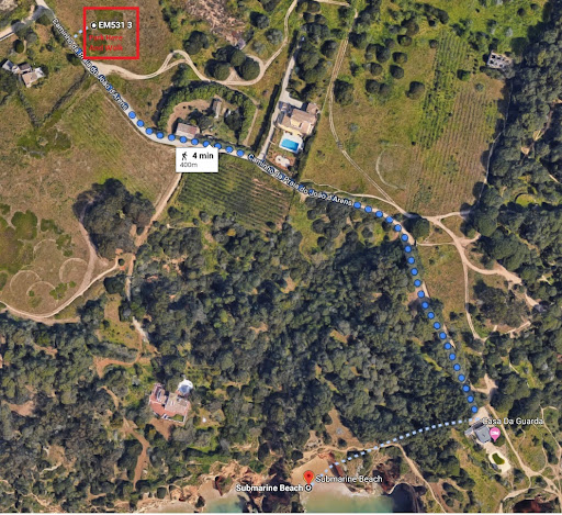 Directions to Submarine Beach, one of the best clothing optional beaches in the Algarve Honestly I was scared going as the directions were very vague and I was not sure how I was going to find it. When I did find it I was soooo happy that I made the attempt as it was one of the most unspoiled beaches I have ever been on. Step 1: Look up tide times as you can only access this beach in low tide and if you stay too long you will be trapped here so go when the tide is going out and stay only when it is half way in. you can do this by googling Tide times Portimao Step 2: you will need to Drive and Park in the field outlined in the map attached Step 3: walk to the end of the road towards Casa da Guarda; make a right and walk around the two Gruta's (holes in the rocks looking down onto the beaches); keep following the path to the right and the path will lead you down onto the beach. It seems confusing so I have done a map using google satellite and put arrows. There are some pictures attached as well.