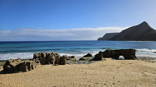 Read moreRomantic place. Lovely yellow sand. This yellow sand has the consistency of baking cake. On the headland, there is a nice bar & restaurant Ponta de Calheta. There is a parking lot next door. Toilet available as well. In May 2022 it was a bit windy spot but nice sun and hot. I...