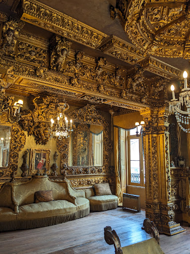 One of a kind house museum dedicated to an exceptionally prolific collector of decorative arts. Between the late 19th and early 20th centuries, the former owner lined every surface of his house with materials and objects recovered from predominantly religious institutions - wood carvings, ironwork, paintings, sculptures, furniture, brocade curtains, gilt mirrors and so on, adapting the objects to fit the space available, which at times meant cutting off parts of canvases or trimming away some acanthus leaves to make a carving fit over a doorway. Walls, ceilings, floors, doors and windows are all encrusted with antique decorations including an ornate pulpit in the stairwell, a stained glass window as a skylight, a gilt gate from a church altar, and a domestic scaled hall of mirrors in the main sitting room. You'll enjoy this one regardless of whether you think it's "tasteful", so make the effort! Keep in mind that you need to book by email (see their website) and it's a guided tour (inexpensive at just €5), but we were in a group of just 6 people one Thursday morning and our guide was lovely. Easily reached by Metro plus...