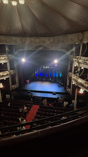 O interior mantém cadeiras antigas, mas surpreendentemente confortáveis, o que proporciona uma experiência autêntica e nostálgica. Contudo, é importante ter atenção ao escolher os assentos ao comprar bilhetes online. A estrutura original do teatro implica que nem todos os lugares têm visibilidade uniforme, e as plataformas de compra nem sempre refletem essa realidade. Assentos nas bancadas 1 e 2, especialmente os mais afastados, podem ter visibilidade limitada, e em alguns casos, o palco é parcialmente obstruído por postes nos pisos superiores. Recomendo, sempre que possível, optar pelos lugares de orquestra, que oferecem uma visão clara e próxima do palco.