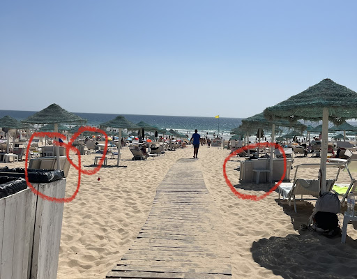 before visiting this place ive tried to read as much info as possible yet found almost nothing useful The beach is huge and great however you must be prepared. Beach beds and parasols are not enough for the amount of people visiting this place at all. Nearby you have the restaurant borda d’agua or other bars (10min walk at least between each) where you can rent 2 beds + 1 parasol for about 20 € / day however you should reserve it early because upon arrival they say its fully booked and they cant help you. (after waiting for hours still many beach beds left empty, they did not mention other options)