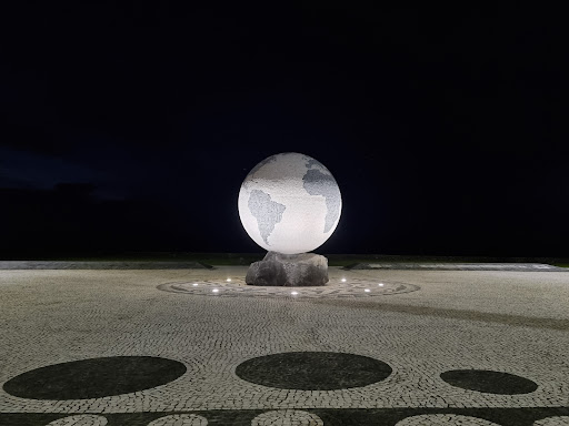 O piso da praça simboliza o mar, executado em calçada branca e basalto negro. O globo, com quatro metros de diâmetro, revestido por calçada e basalto negro representa a Terra e a pedra onde assentará o globo representa a(s) ilha(s).